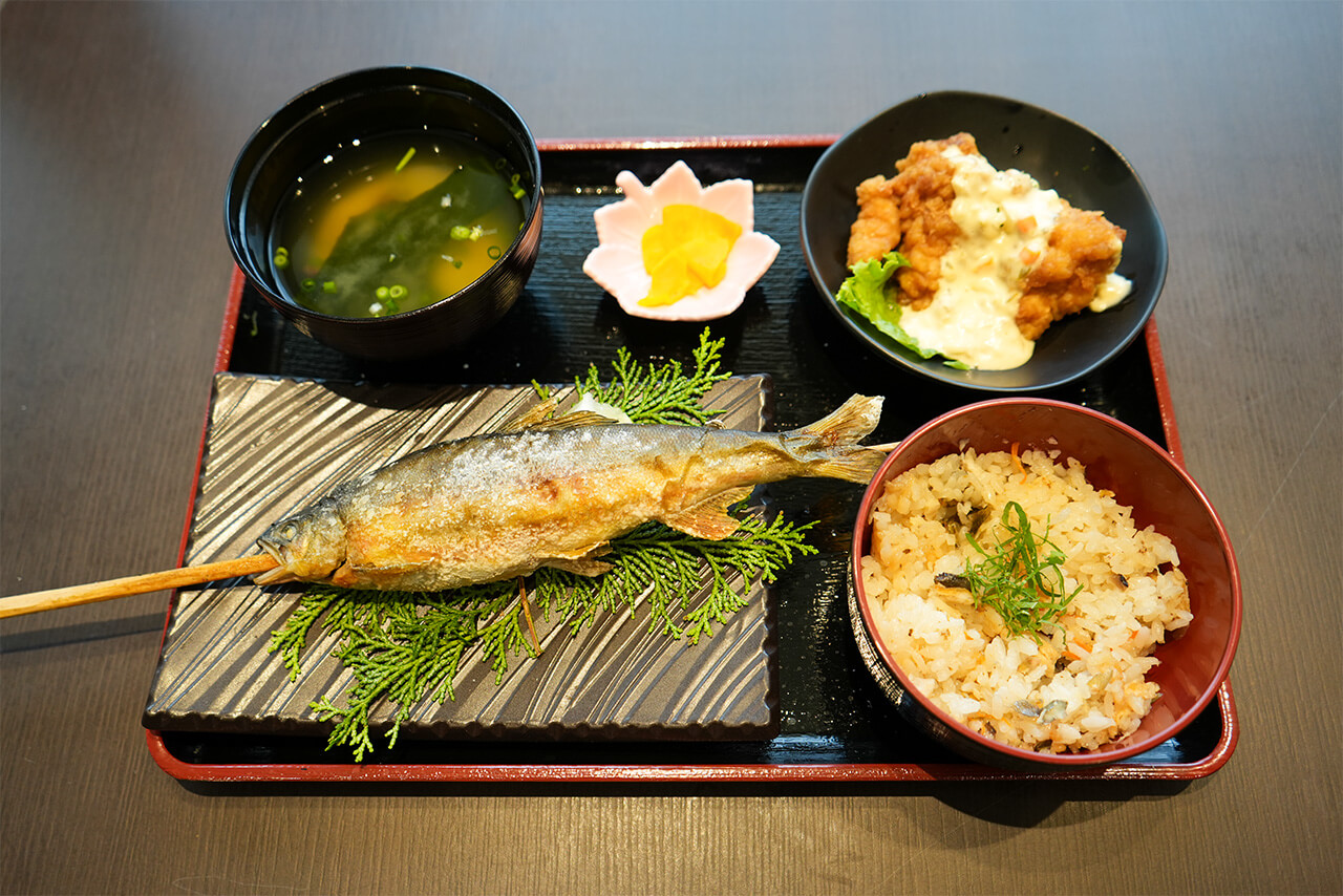 メニュー:鮎の塩焼き、鮎めし、味噌汁、チキン南蛮 - 学習活動