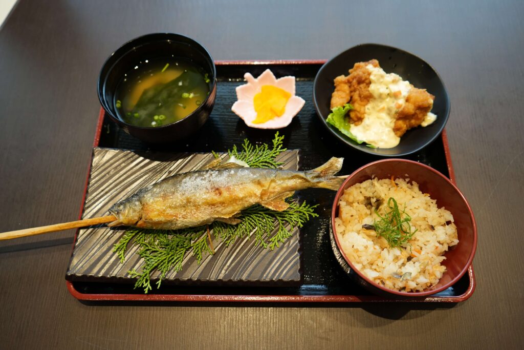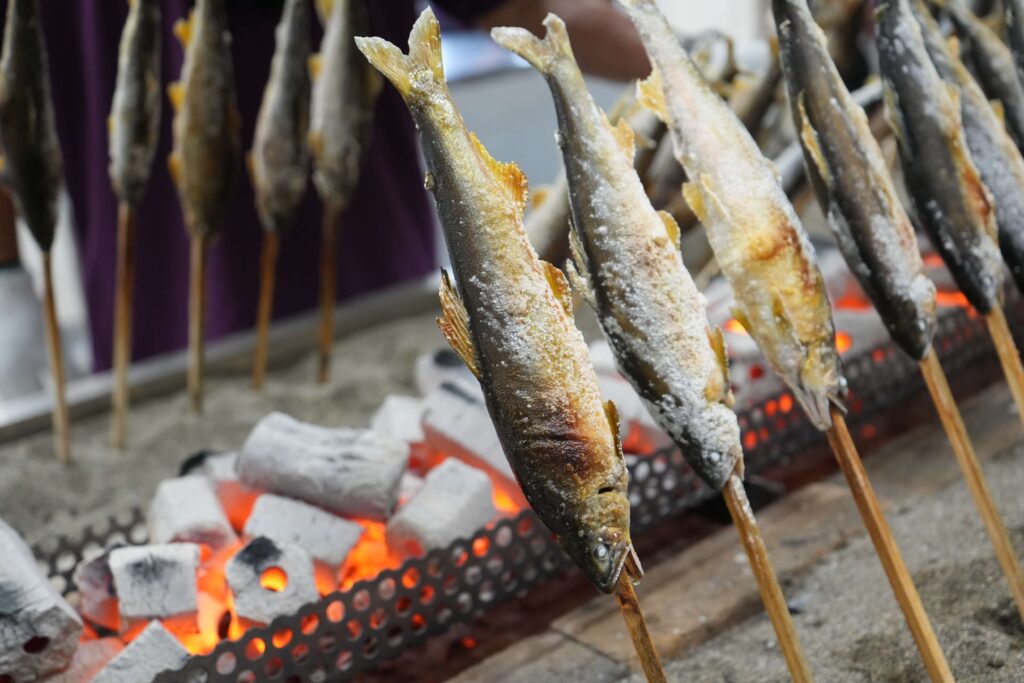 「ふるさとの食文化を知る」鮎料理の振る舞いを実施しています